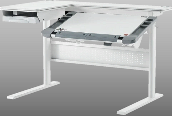 Модель стола М31 имеет простой дизайн без лишних декоративных элементов. Стационарная часть столешницы расположена слева. Этот стол, благодаря сдержанному дизайну, гармонично впишется в ваш дом. Для регулировки высоты стола используется высокотехнологичный запатентованный механизм. За одну секунду вы можете настроить его от 58 до 91 см, что подходит как для маленьких детей, так и для взрослого человека. Ребенок может заниматьсяя за этим столом даже стоя.