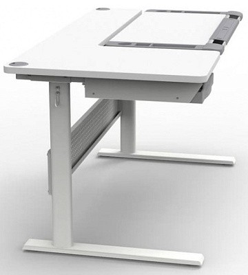 Основная столешница мгновенно регулируется по высоте нажатием одной клавиши от 58 до 91 см. Также с помощью рычага под столешницей вы можете настроить угол наклона от 0 до 37 градусов.