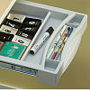 В правом углу стола есть удобный элегантный выдвижной органайзер для канцелярии.
