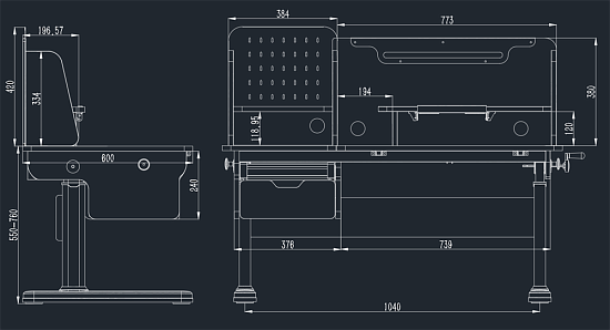 Особенностью парты является возможность регулировки высоты столешницы от 550 до 760 мм. Это позволяет адаптировать стол под рост ребенка от 100 до 170 см.