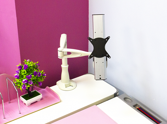 Устройство кронштейна для монитора вращается на 360 градусов, а также позволяет настроить правильное безопасное расстояние до глаз (расстояное от монитора до глаз должно быть 1,5 диагонали монитора)