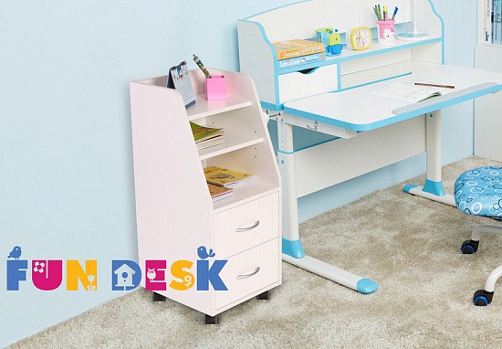«ФанДеск» могут регулировать высоту парты под рост ребенка, а столешница может изменять угол наклона. Каждую модель можно оборудовать дополнительными аксессуарами. Парта «FunDesk» имеет множество ящиков для хранения канцелярских принадлежностей и тетрадей.