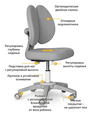 Эргономичная двойная спинка поддерживает спину и создает комфорт во время занятий. В комфортном кресле ребенок будет более усидчивым.
