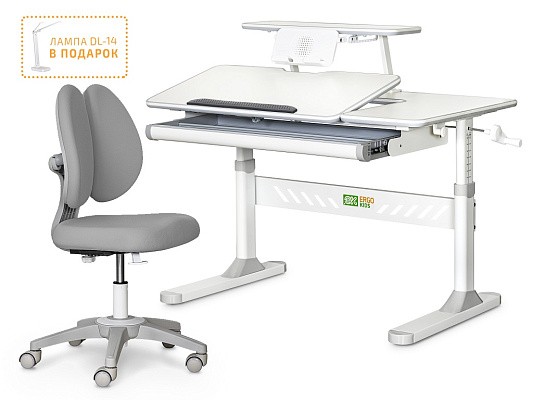 Стол дополнен съемной полкой, на которой можно размещать учебники. Полка имеет регулируемую металлическую подставку для книги. Подставка для книг находится на безопасном расстоянии от глаз ребенка, таким образом сохранится зрение. По окончанию работы, подставку можно задвинуть.