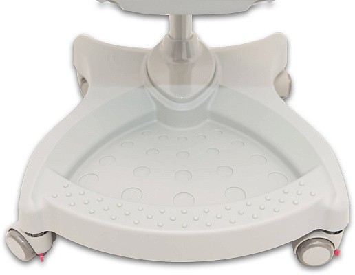 Подставка для ног из прочного пластика. Нейлоновые колесики плавно скользят по полу, не повреждая его. Движение кресла блокируется при нагрузке от 25 кг. Функция отключения блокировки колес.