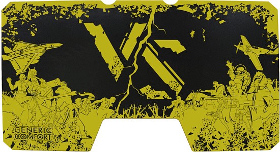 Generic Comfort Gamer2/VS - стильный компьютерный стол с необычным дизайном. Кромки стола выполнены в красном цвете, а на черную основу методом ультрафиолетовой печати нанесен красный рисунок. За счет такой технологии, изображение получается ярким, насыщенным и при этом долговечным, с высокой стойкостью к истиранию. Рисунок наносится дополнительным слоем, вследствие чего выступает на 0,2 мм над поверхностью. Поэтому, на данном столе рекомендуется использовать коврик для мышки.
