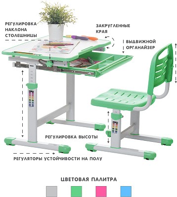 Парты «Holto» Комплект «Holto» SET 2A: парта + стульчик