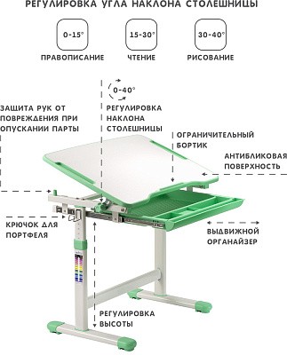 • Угол наклона столешницы (в градусах), от 0 до 40°