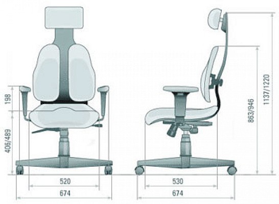 Свойства ортопедической спинки дополняются анатомическим сиденьем, способствующим правильной посадке и упреждающим застойные явления в бедре.