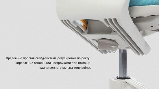 Высокая спинка имеет ярко выраженный ортопедический обхват, помогает пользователю добиться правильного расположения всех отделов позвоночника и поясницы. Она сделана с применением технологии Duoflex, регулируется по росту, в глубину, что позволяет персонализировать ее под особенности телосложения в период интенсивного роста.