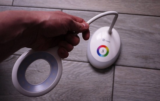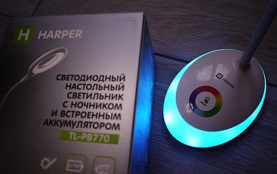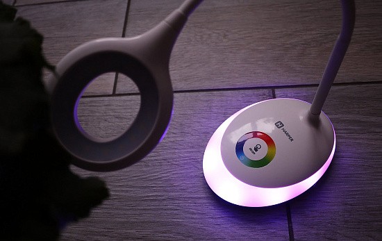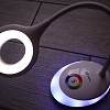 Прикосновение к цветному кругу включает подсветку (ночник) желаемого цвета цвета. RGB подсветка 256 цветов. Ночник может работать как отдельно, так и совместно с лампой.