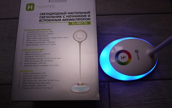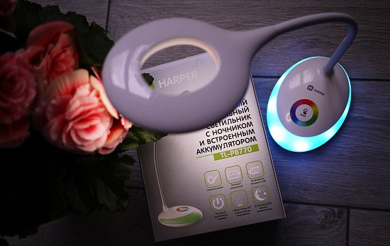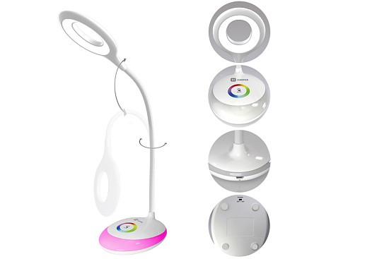 Светодиодный настольный светильник с RGB (256 цветов) ночником и встренным аккумулятором.Светильник и ночник одновременно! С регулировкой яркости и сенсорным управлением. Управление режимом работы светильника осуществляется прикосновениями к сенсорной панели на его передней части. Однократное прикосновение к области сенсорной панели включает основной светильник, повторное прикосновение выключает его. Кнопками можно изменять яркость светильника. Включение и выключение дополнительного светильника осуществляется путем однократного прикосновения к области сенсорной панели. Однократное прикосновение и плавное перемещение вдоль сенсорной цветовой шкалы вызывает соответствующее изменение цвета свечения. Благодаря гибкости опорной ножки светильника, устройство становится неповторимо в удобстве и простоте использования. Высокоемкостной аккумулятор (1000 мАч) лампы отличается высокой безопасностью и экологичностью и позволит вам сократить затраты энергии.