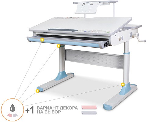 Одной из важных особенностей детской парты BD-610 Edmonton Lite является наличие цветных накладок в подарок! Приобретайте растущий стол и получите один з цветных наборов накладок совершенно бесплатно! Накладки представлены в розовом и голубом цветах.