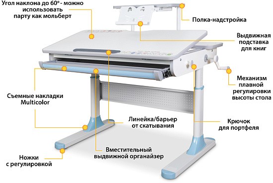 Наличие съемного прорезиненного барьера на столешнице предотвратит скатывание предметов во время выполнения домашнего задания.