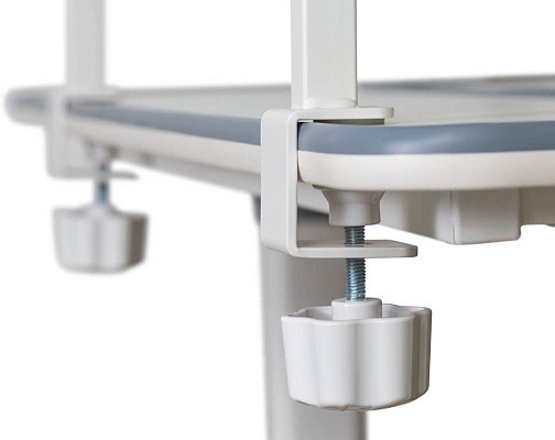 Изменение высоты всего стола осуществляется с помощью червячного механизма ручкой, которую можно установить слева или справа на боковой части стола.