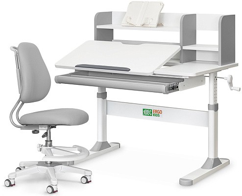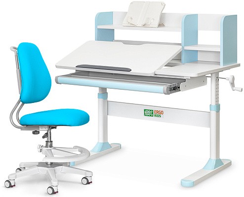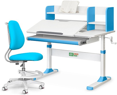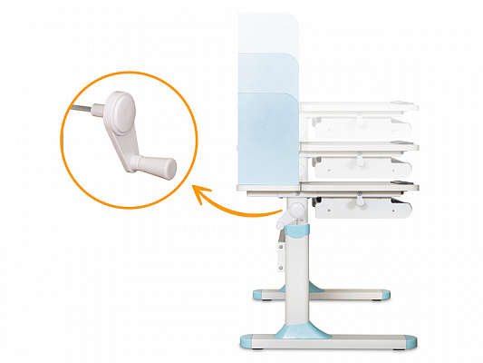 Высота стола регулируется механической ручкой. Это позволяет с легкостью устанавливать парту в соответствии с ростом ребенка.