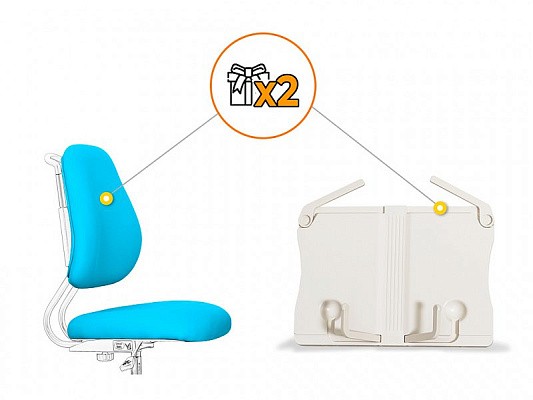 В подарок к комплекту получите сьемные чехлы для кресла из мебельной, дышащей ткании и переносную подставку для книг, тетрадей с зажимами.