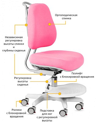 Особенностью модели является наличие подставки для ног с возможностью регулировки высоты. Благодаря такой функции кресло можно использовать вместе со стандартным нерегулируемым столом.