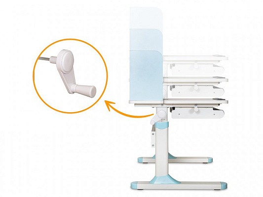 Высота стола регулируется механической ручкой. Это позволяет с легкостью устанавливать парту в соответствии с ростом ребенка.