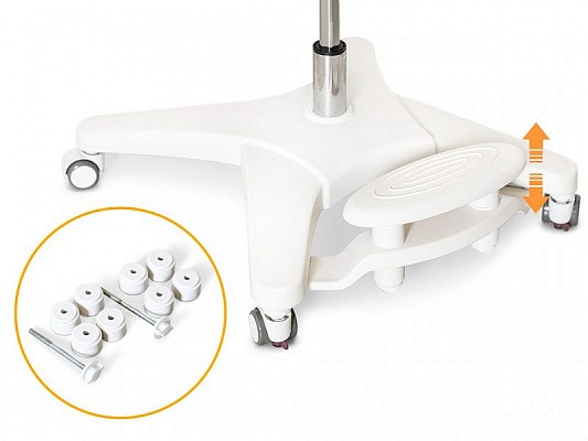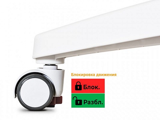 На стойкой основе крепятся нейлоновые колеса, которые автоматически блокируются при посадке на кресло. Блокировка легко отключается при необходимости.