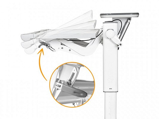 С помощью специальной ручки можно регулировать высоту рабочей части столешницы. Заданная высота устанавливается независимо от высоты всей конструкции стола.
