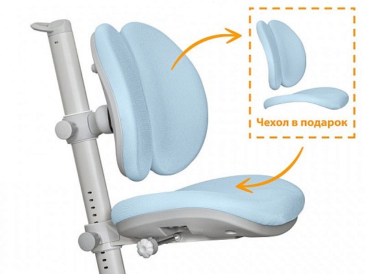Главная особенность кресла - увеличенный диапазон регулировки глубины сидения за счет подвижной спинки. Глубина спинки плавно регулируется специальным механизмом. Глубина сиденья – ручкой -фиксатором. Кресло подойдет для детей от 3х лет до взрослого возраста.