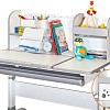 У стола есть вместительная и удобная полка-надстройка. На множестве полочек можно размещать учебники и другую литературу. Задняя стенка надстройки сделана из металла, поэтому вы легко можете использовать ее как место крепления заметок с помощью магнитов. Важным дополнением полки-надстройки является наличие выдвижной металлической подставки для книги.
