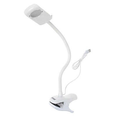 Лампа настольная на прищепке светодиодная TLD-554 — светильник со специальным креплением в виде прищепки. Изготовлен из пластика, оформлен в современном стиле. Прибор не занимает место на столе, а фиксируется на краю столешницы. При необходимости настольная лампа закрепляется на предметах интерьера с выступами, превращаясь в источник верхнего света.