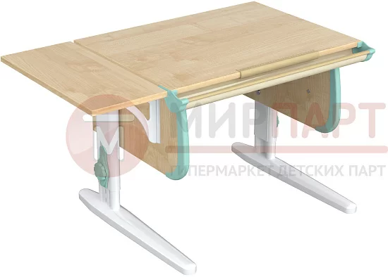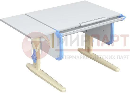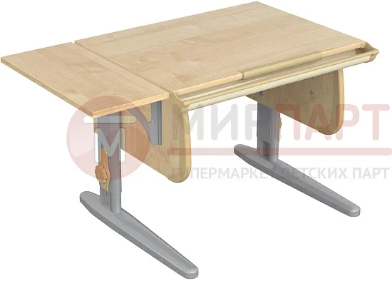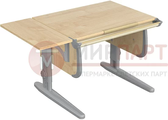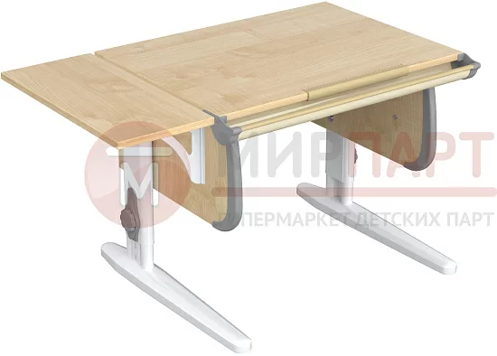 Рабочее пространство парты дополнительно расширено за счёт удобной боковой приставки. Она не наклоняется при изменении положения столешницы и оптимально подходит для размещения стаканчика с водой, компьютерной мышки и т. п. предметов.