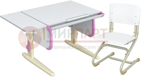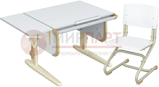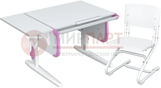 СУТ-24-01-К – это новинка из серии «Дэми-White», оборудованная короткой боковой полкой. Парта идеально подходит для того, чтобы обустроить в детской удобное и, вместе с тем, компактное рабочее место, которое будет служить ребёнку на всём протяжении его обучения в школе.