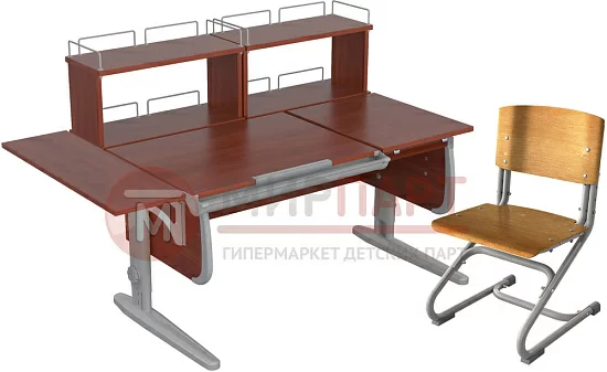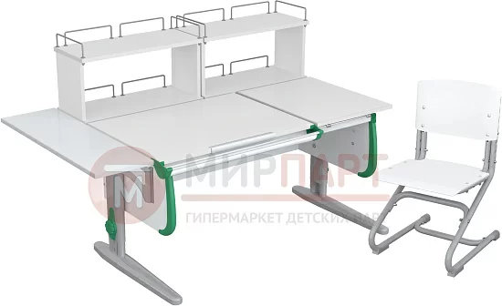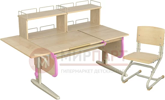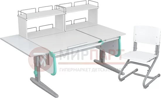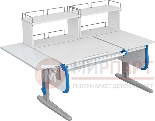 Парта 120 см с раздельной столешницей + 2 задние двухъярусные приставки + боковая приставка 75 см