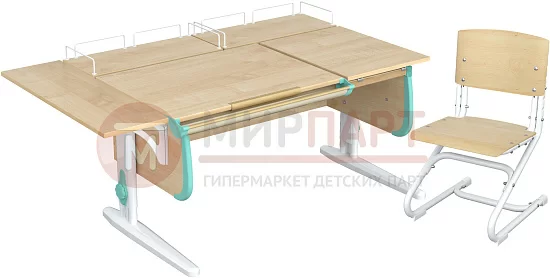 Парта 120 см с раздельной столешницей + 2 задние приставки + боковая приставка 75 см