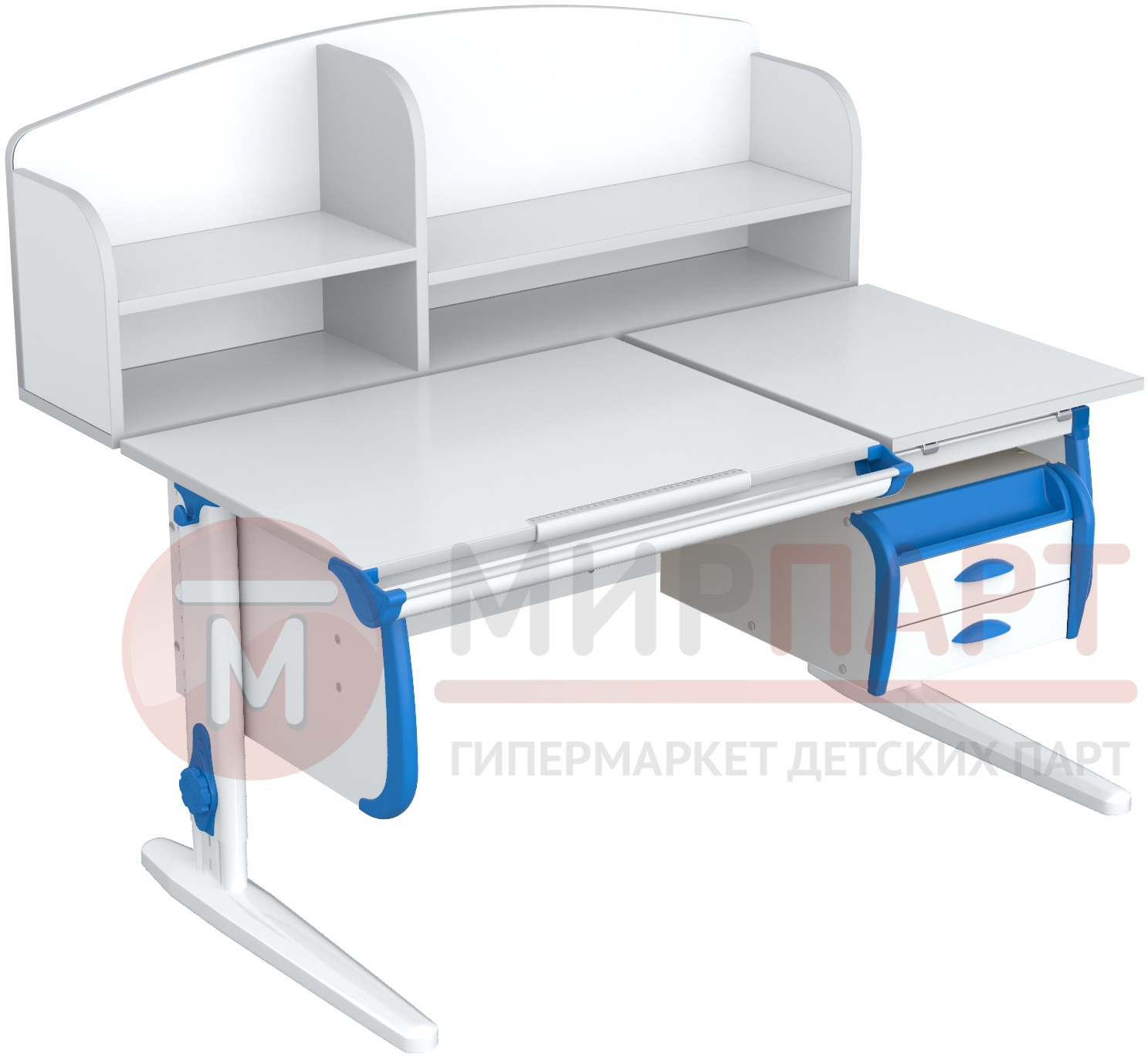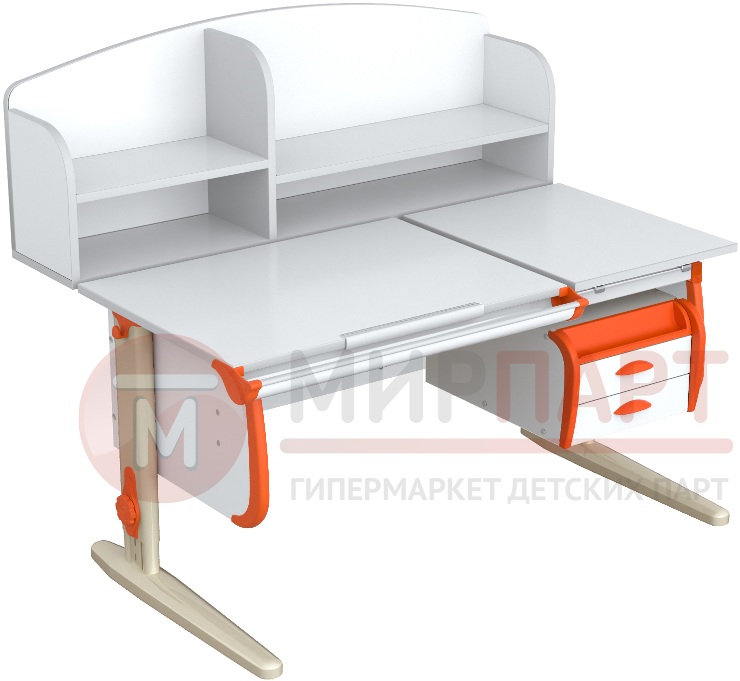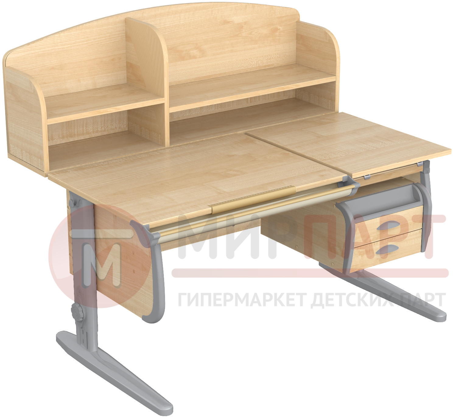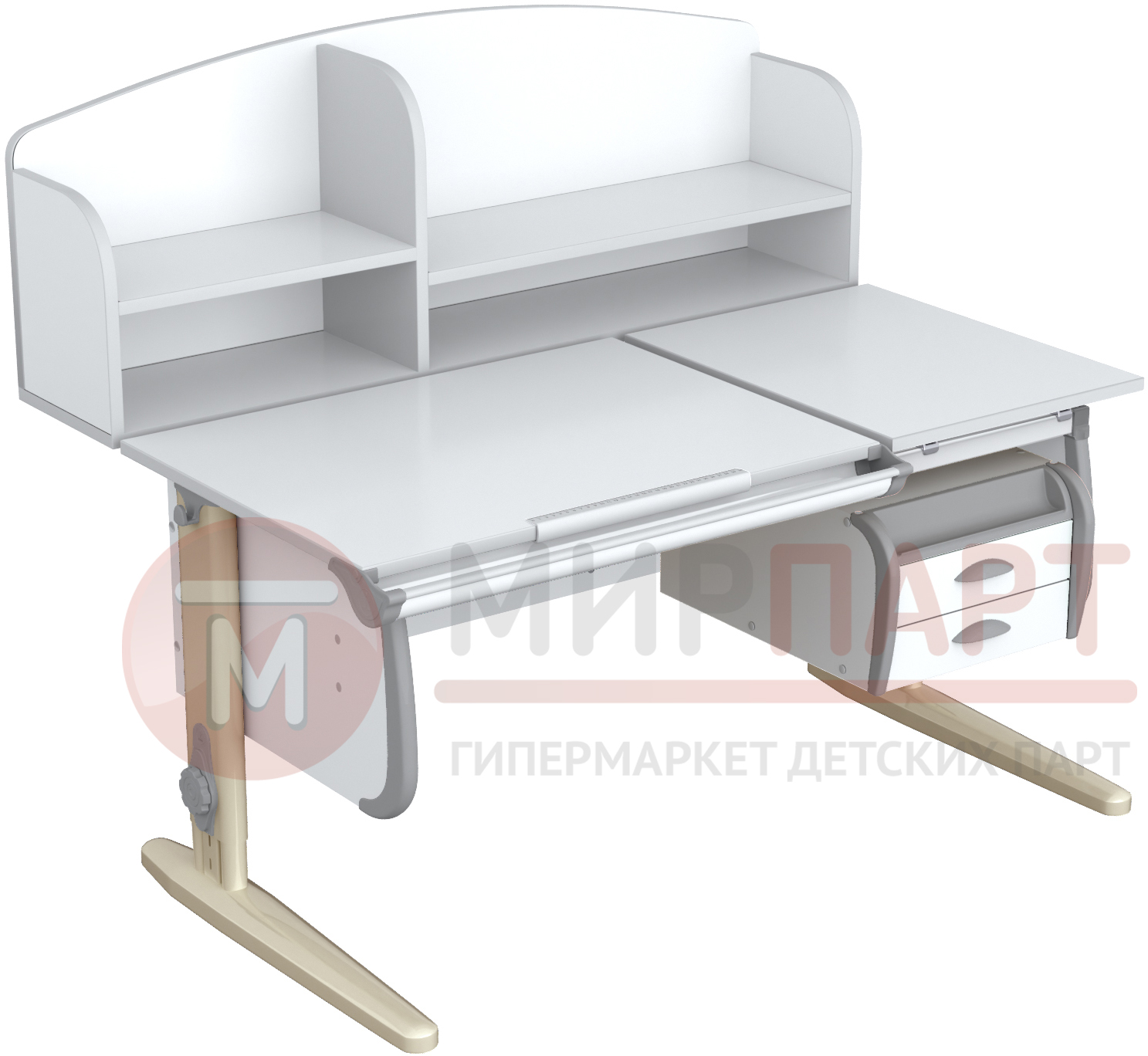 Парта 120 см с раздельной столешницей + тумба + 2 задние надстройки