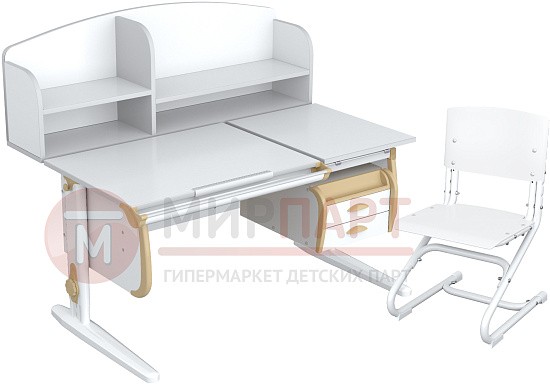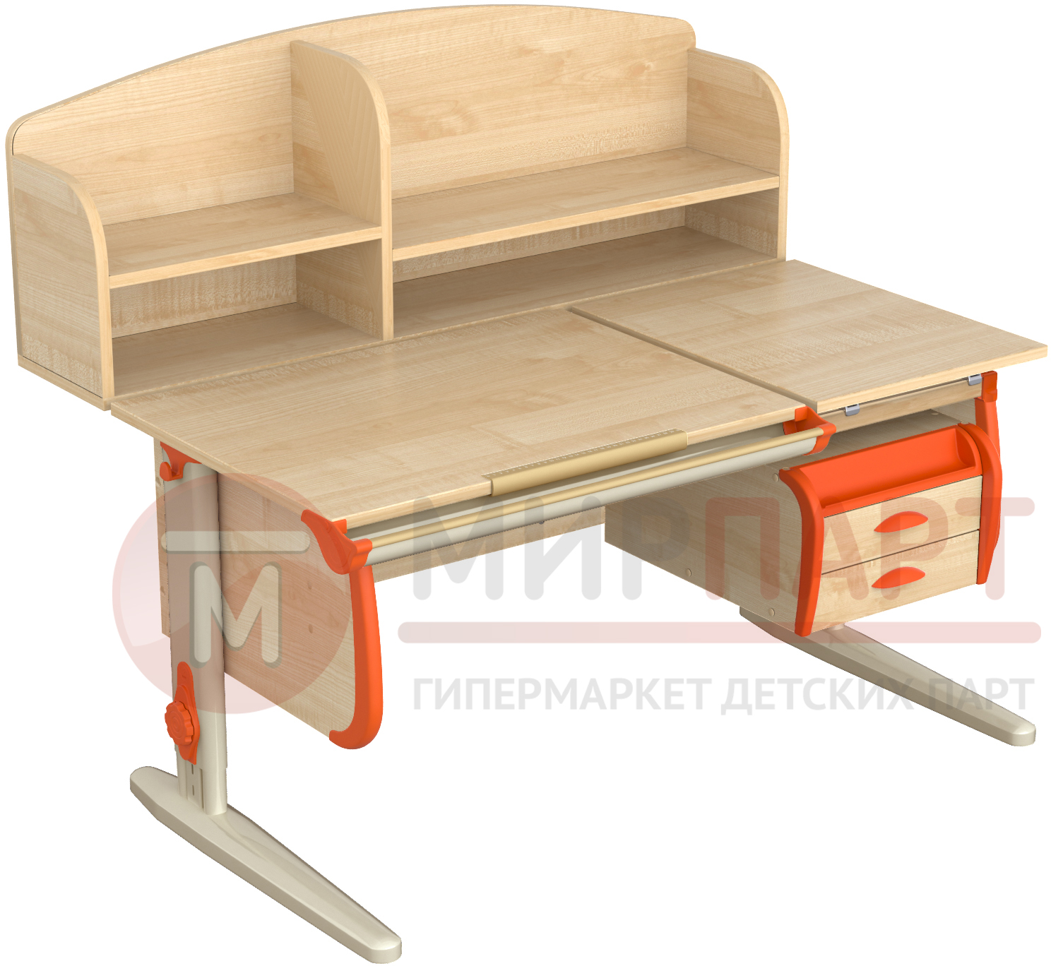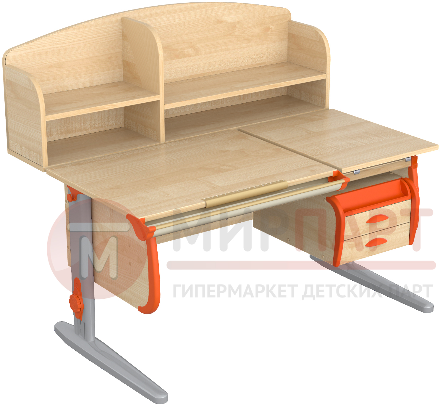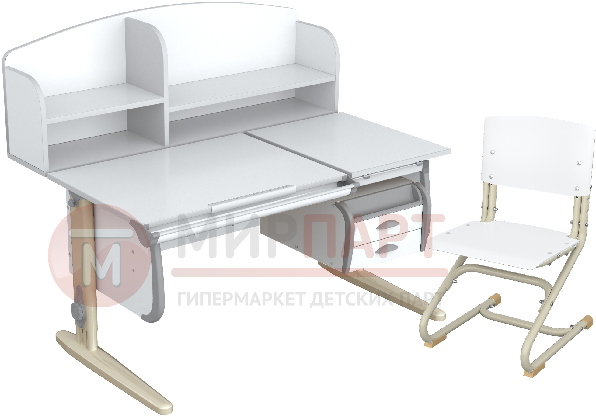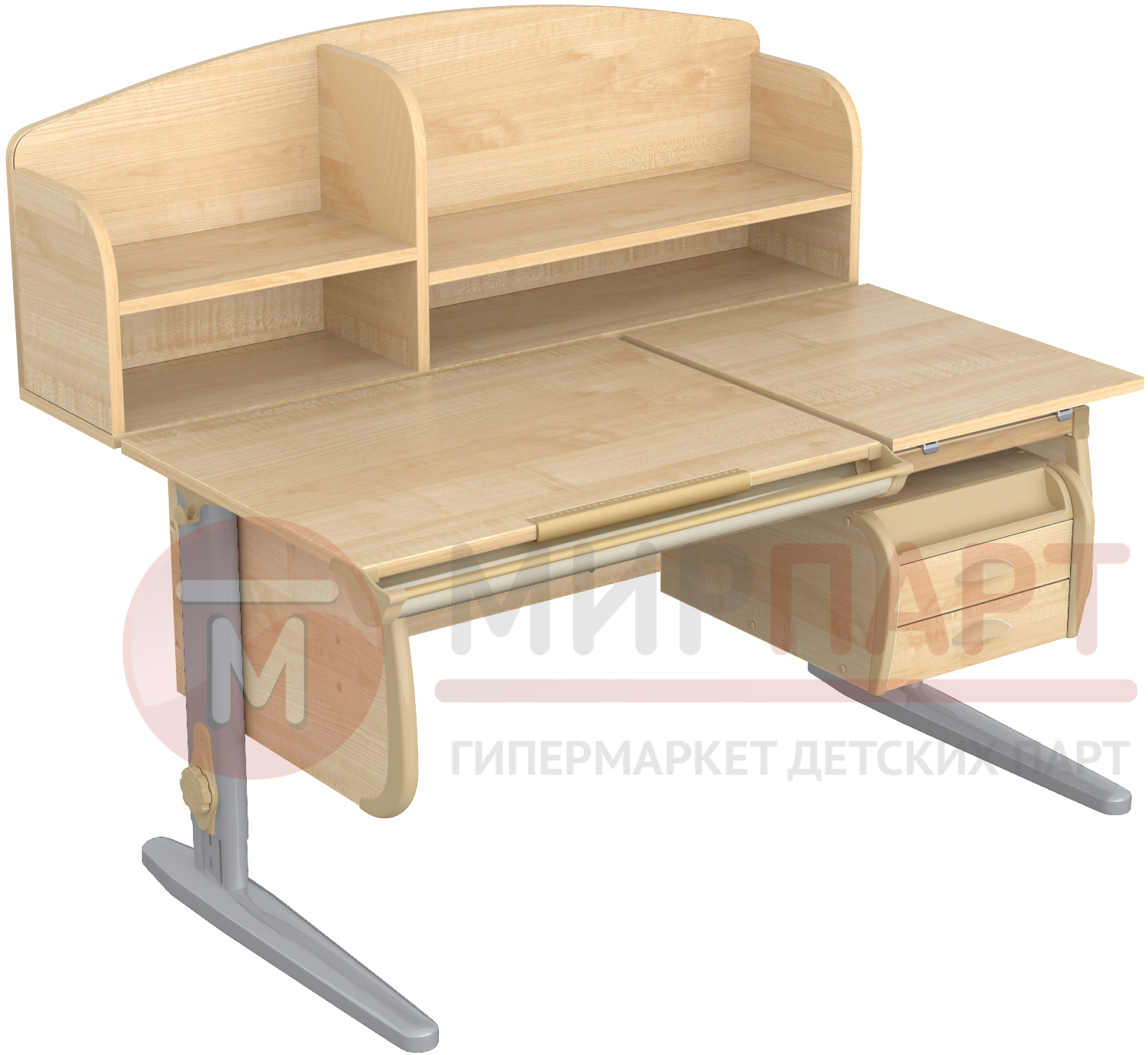 Парта 120 см с раздельной столешницей + тумба + 2 задние надстройки