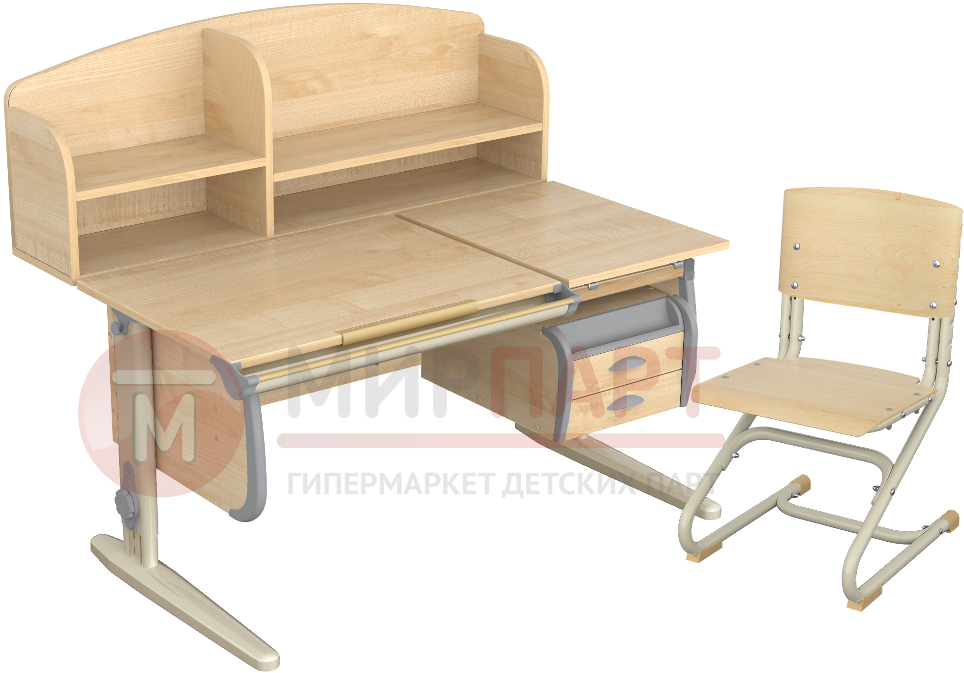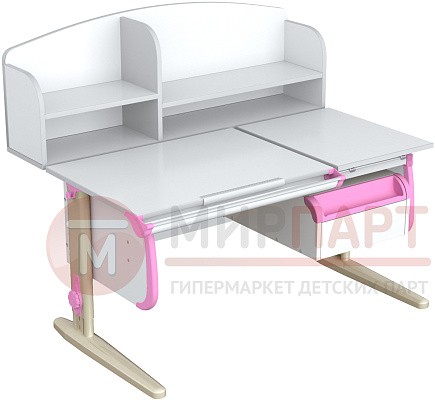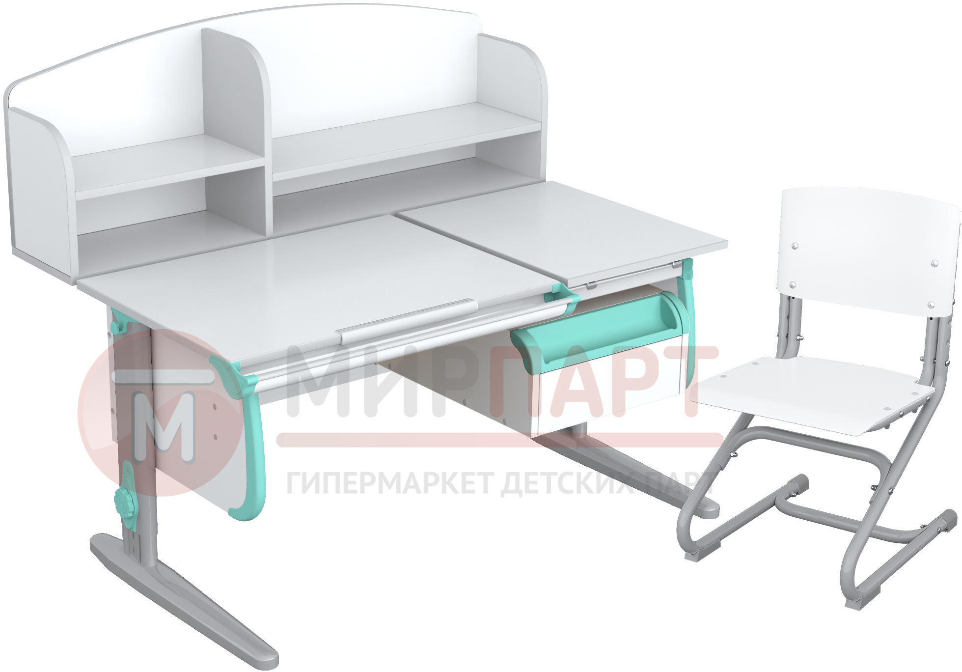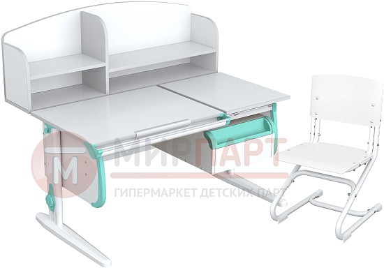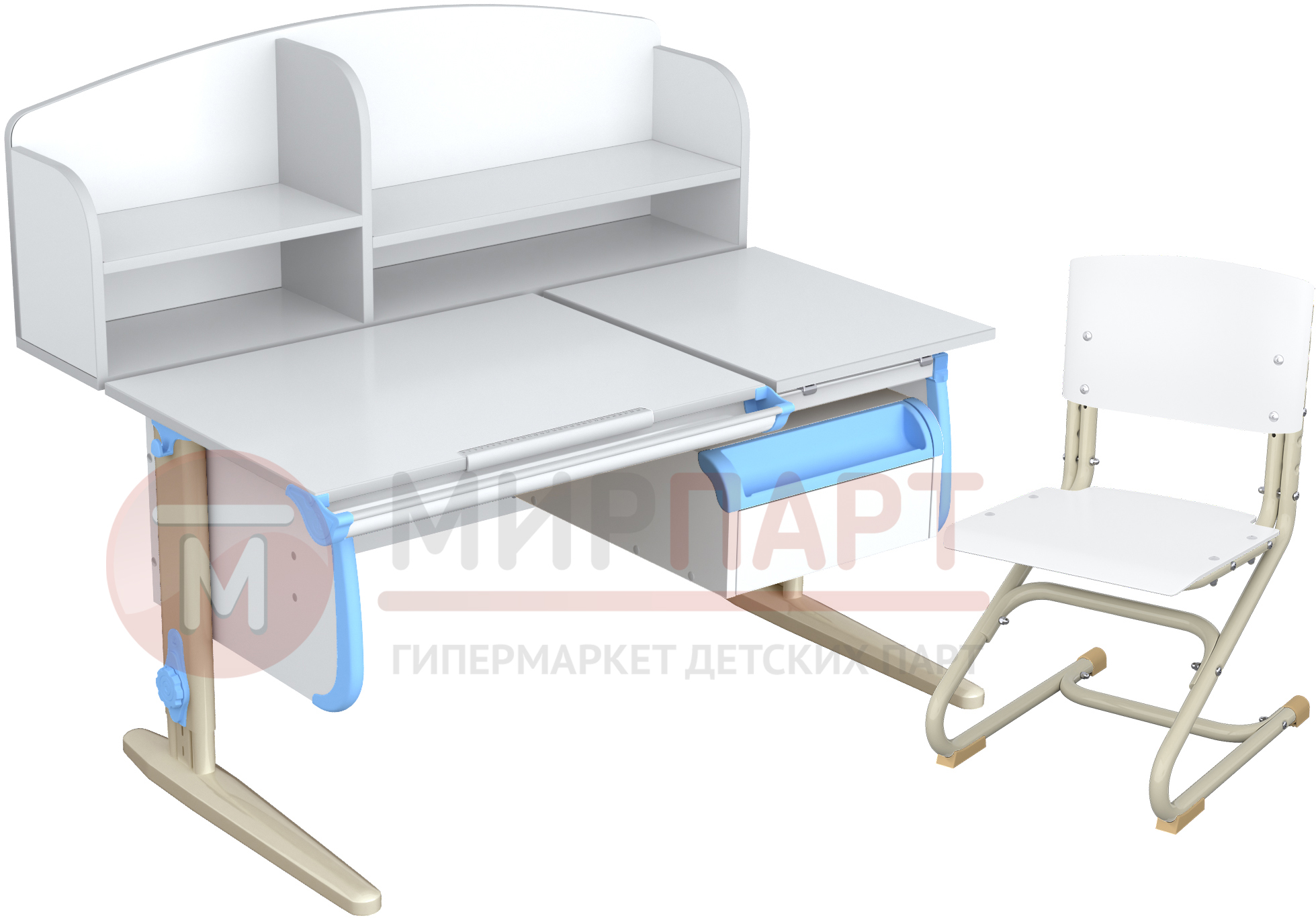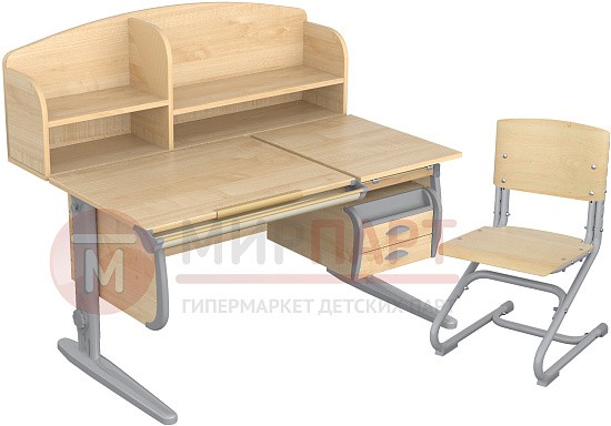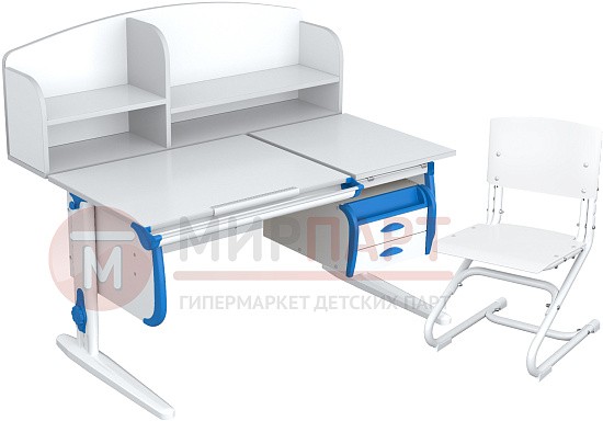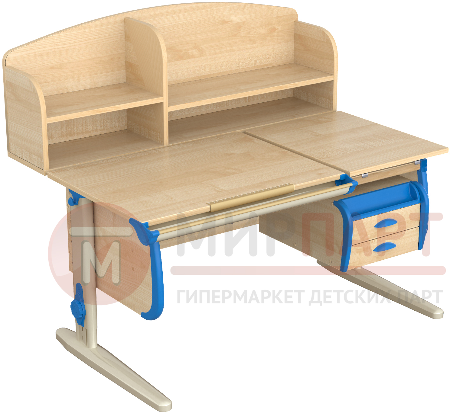 Парта 120 см с раздельной столешницей + тумба + 2 задние надстройки