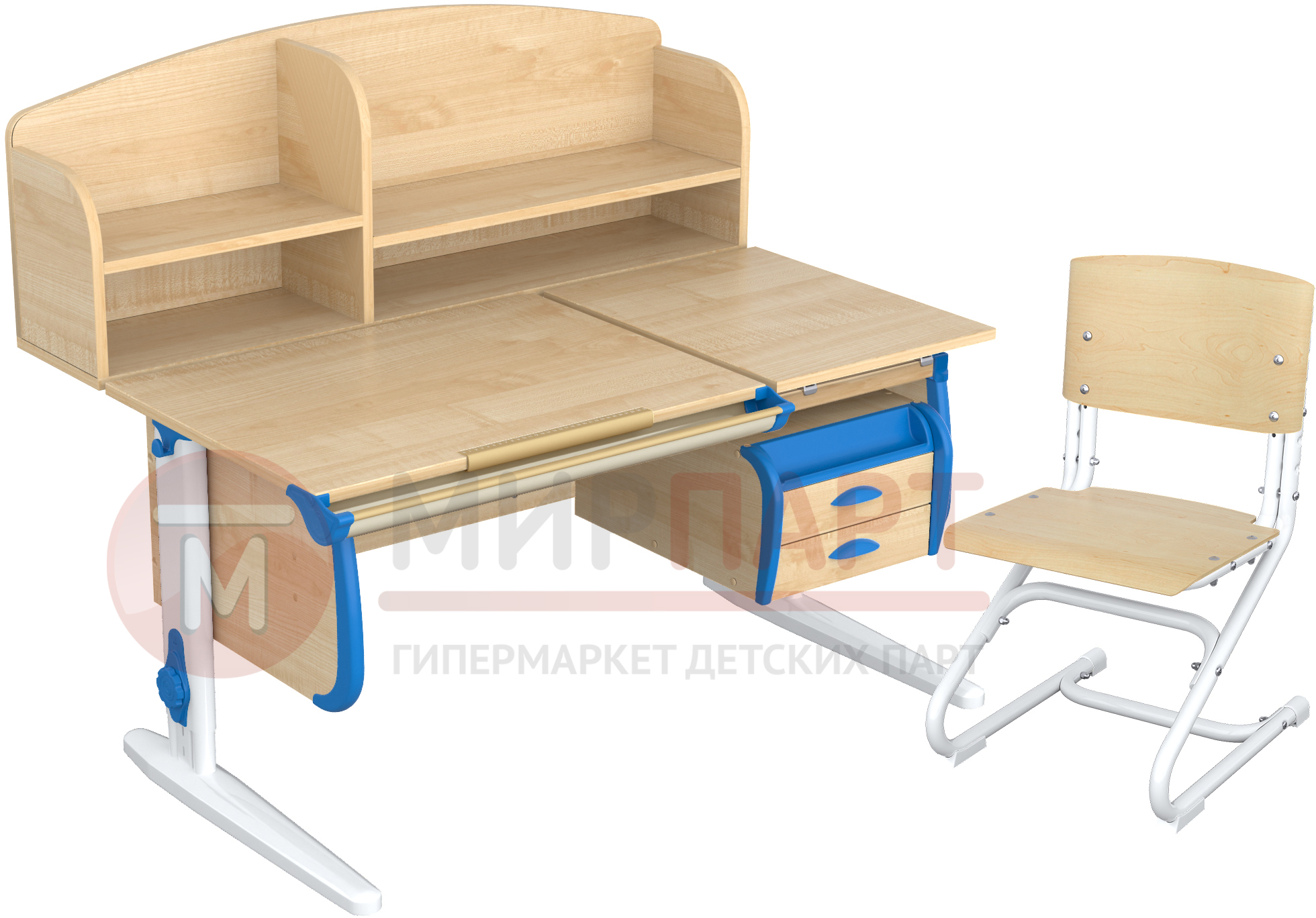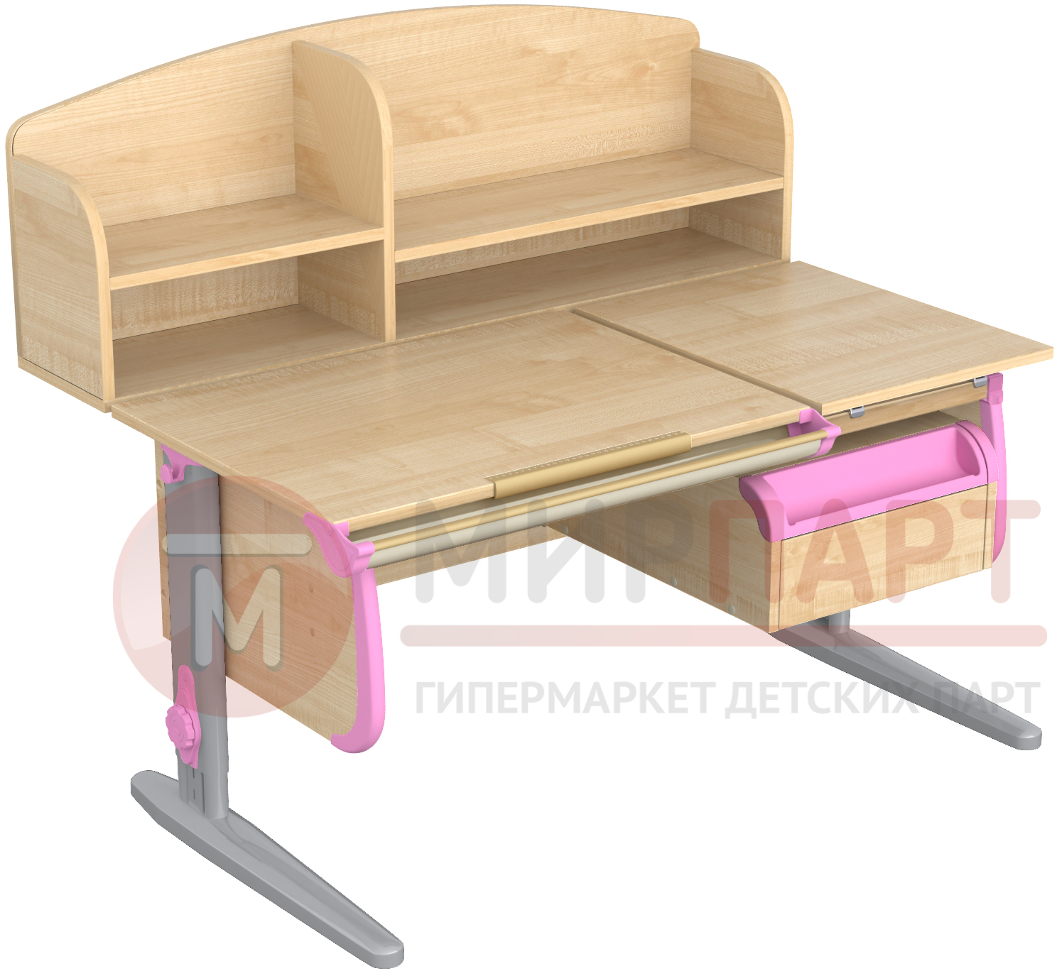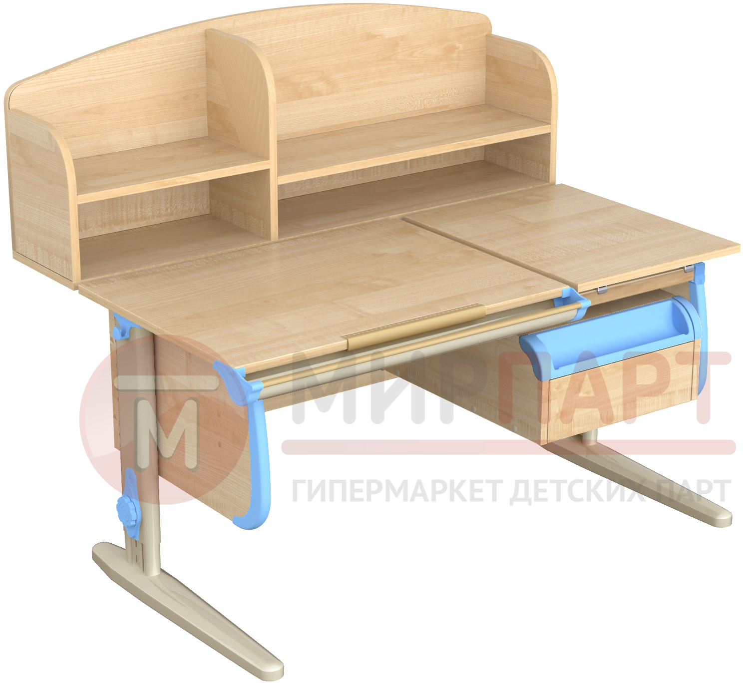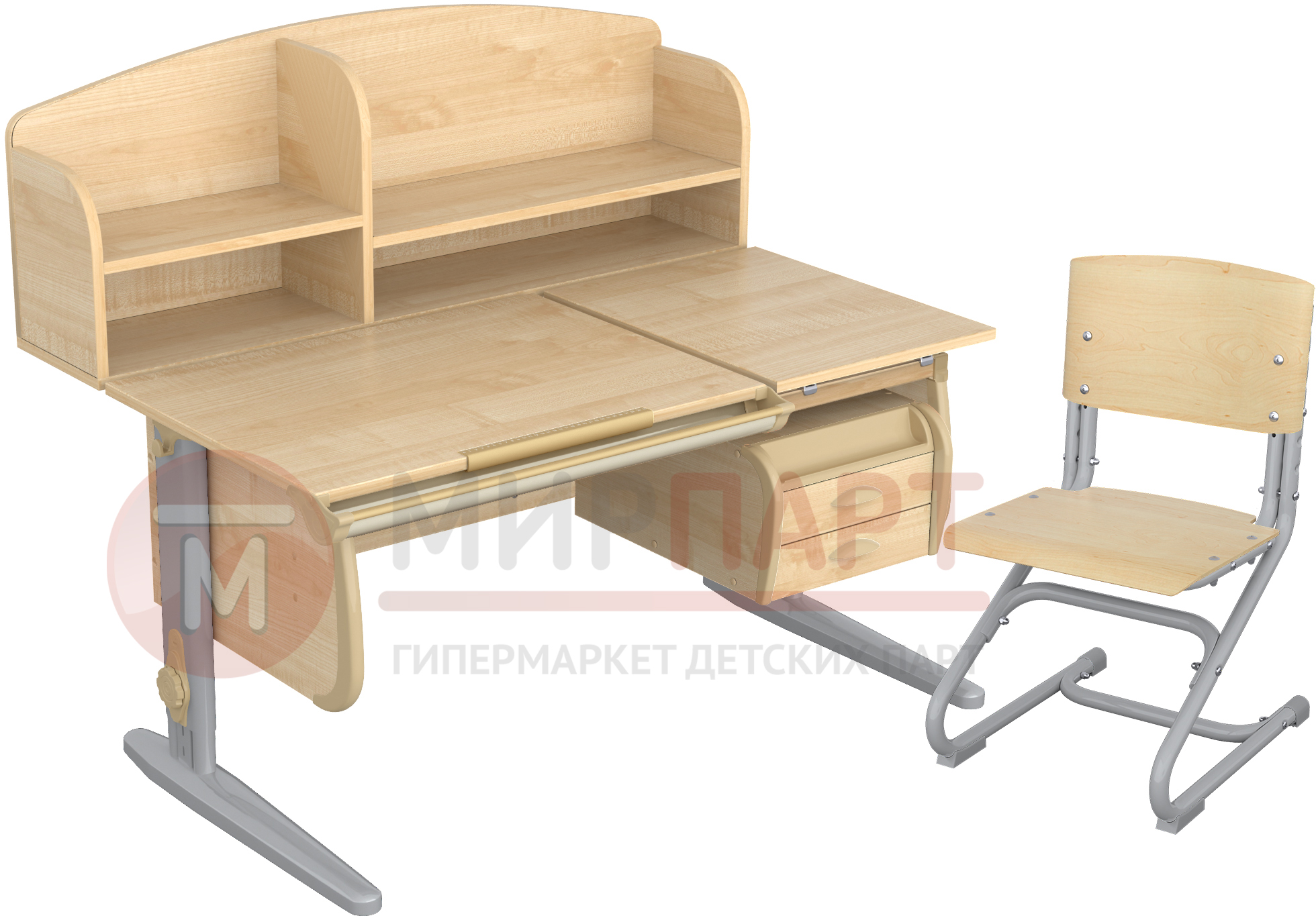 Парта 120 см с раздельной столешницей + тумба + 2 задние надстройки