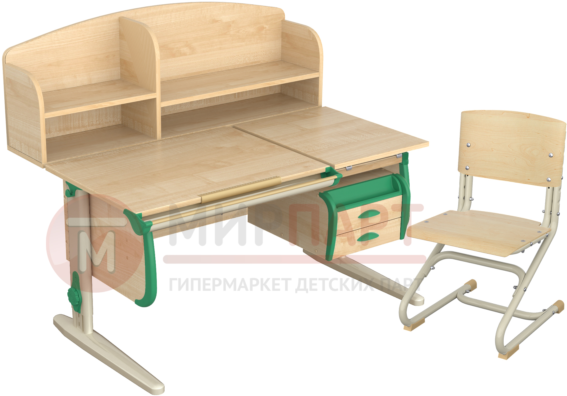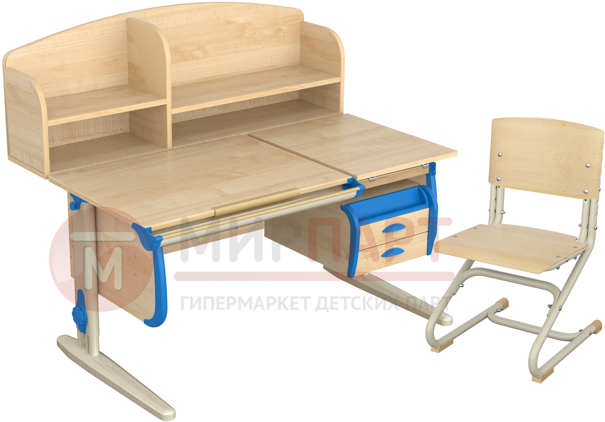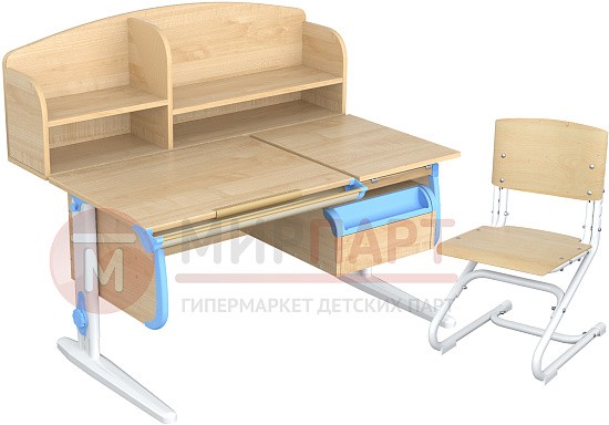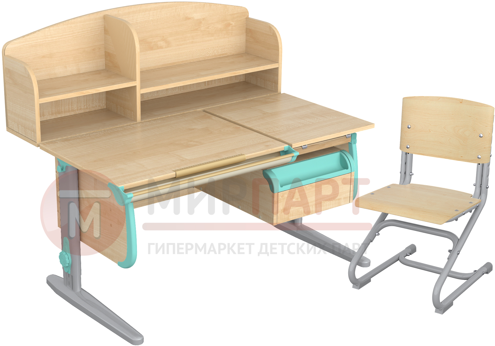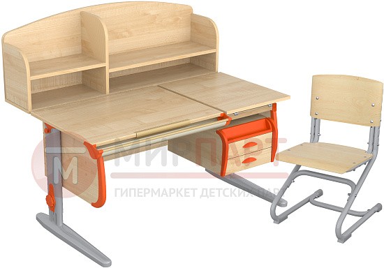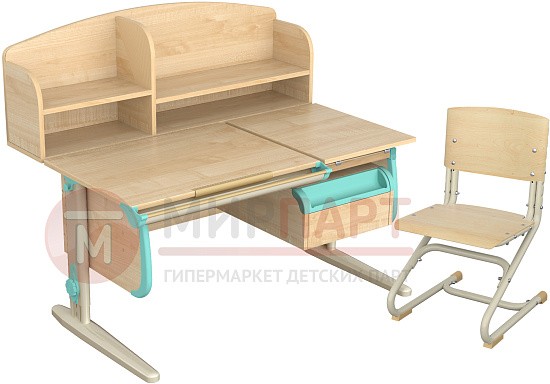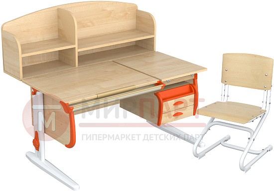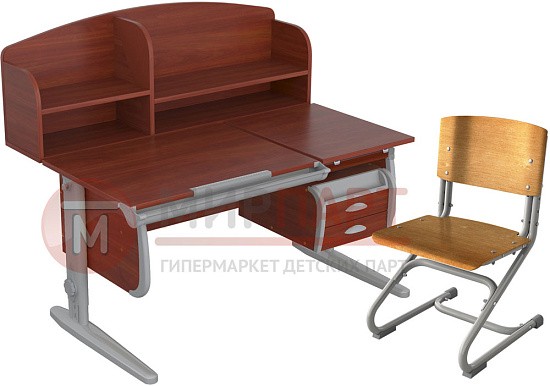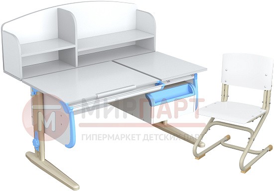 Парта 120 см с раздельной столешницей + тумба + 2 задние надстройки