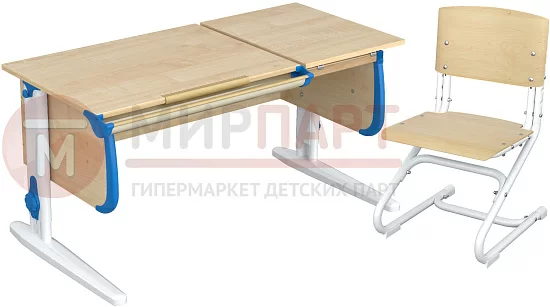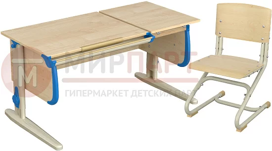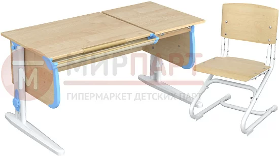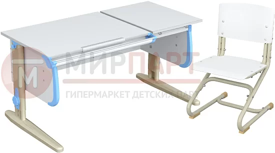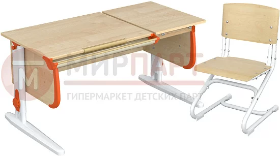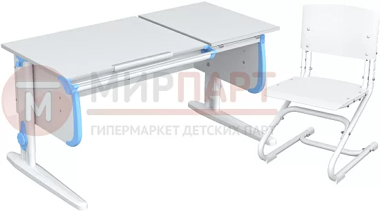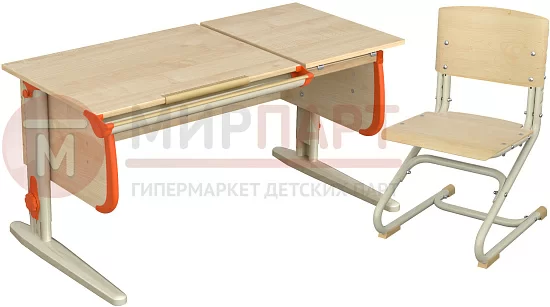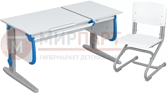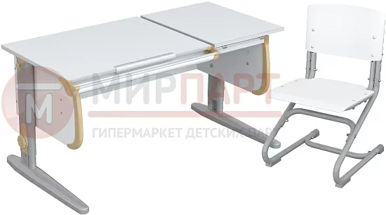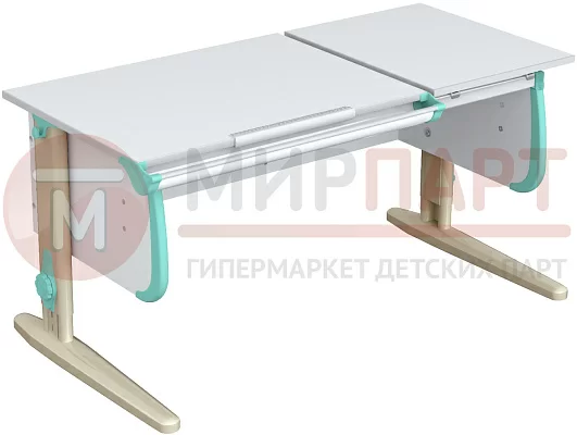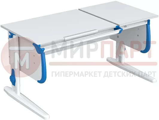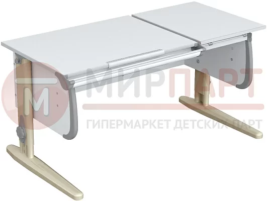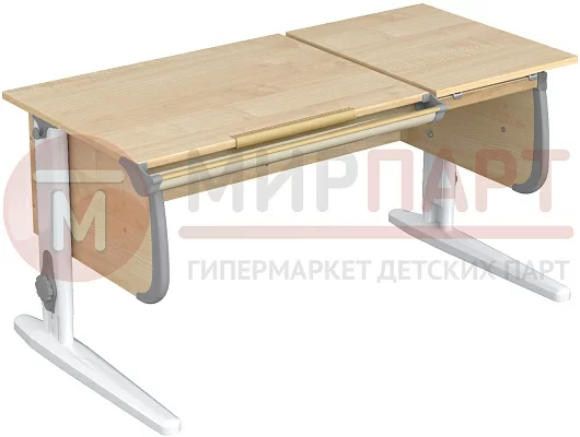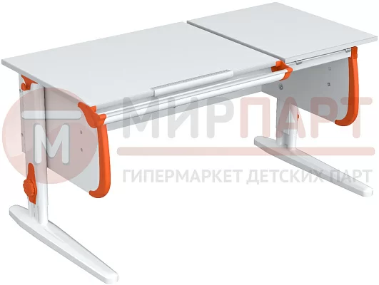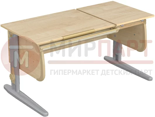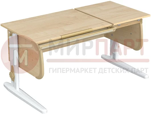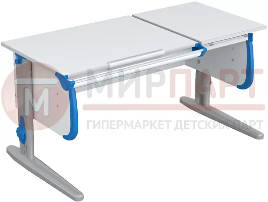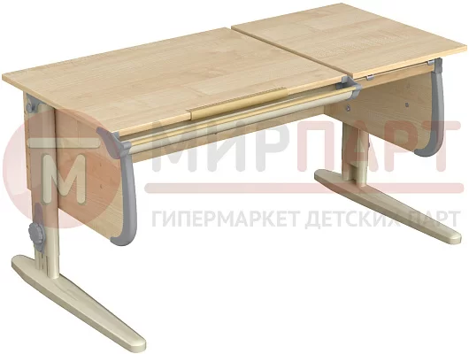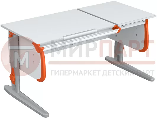 Столешница СУТ-25 состоит из двух частей: наклоняемой и жёстко закреплённой. Первая является основным рабочим пространством, вторую удобно использовать для размещения школьных принадлежностей, книг, оргтехники и офисных органайзеров. При этом неподвижная часть крышки может быть расположена как слева, так и справа – Вы сами решаете, как Вам удобнее. Более того: ширина парты позволяет заниматься одновременно двум детям.